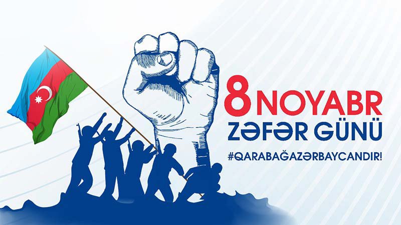 2020-ci il noyabrın 8-də xalq, iqtidar və ordu arasındakı möhkəm birliyin uğurlu nəticəsi olaraq müqəddəs Vətən torpaqlarının işğaldan azad olunduğu gün! Son iki yüz ilə yaxın dövrdə erməni millətçiliyinin həyata keçirdiyi qəsbkarlıq və etnik təmizləmələr silsiləsinə son qoyulduğu gün.